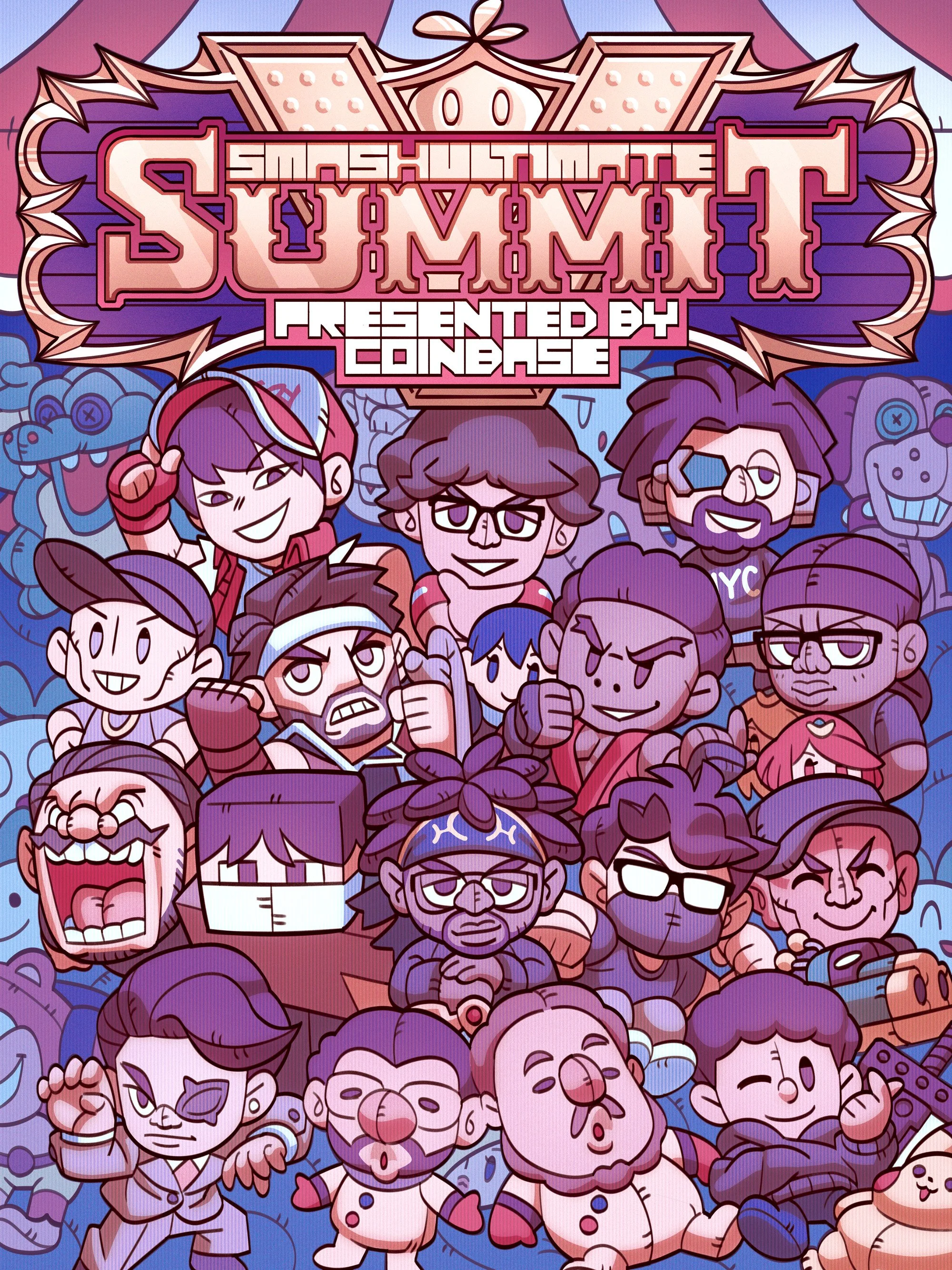 “Low Tier Celebrations” – A series of character portraits featuring passionate Super Smash Bros. Melee players, parodying the game's character select screen.